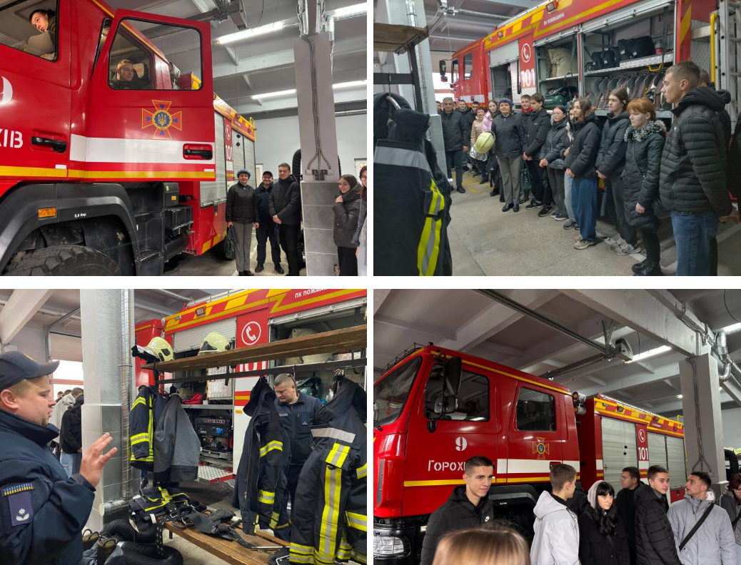 Найяскравішим моментом Тижня стала екскурсія до місцевого підрозділу Головного управління ДСНС України у Волинській області, організована інженером з охорони праці Ігорем Савченком та викладачами Галиною Жельчик і Світланою Савченко. Студенти груп О-21, ФП-21, А-22 мали унікальну можливість поспілкуватися із заступником начальника пожежної частини Андрієм Леонідовичем Шейником, який провів змістовне заняття з мінної небезпеки, запобігання ризикам, поведінки з вибухонебезпечними предметами та діями у разі надзвичайної ситуації.